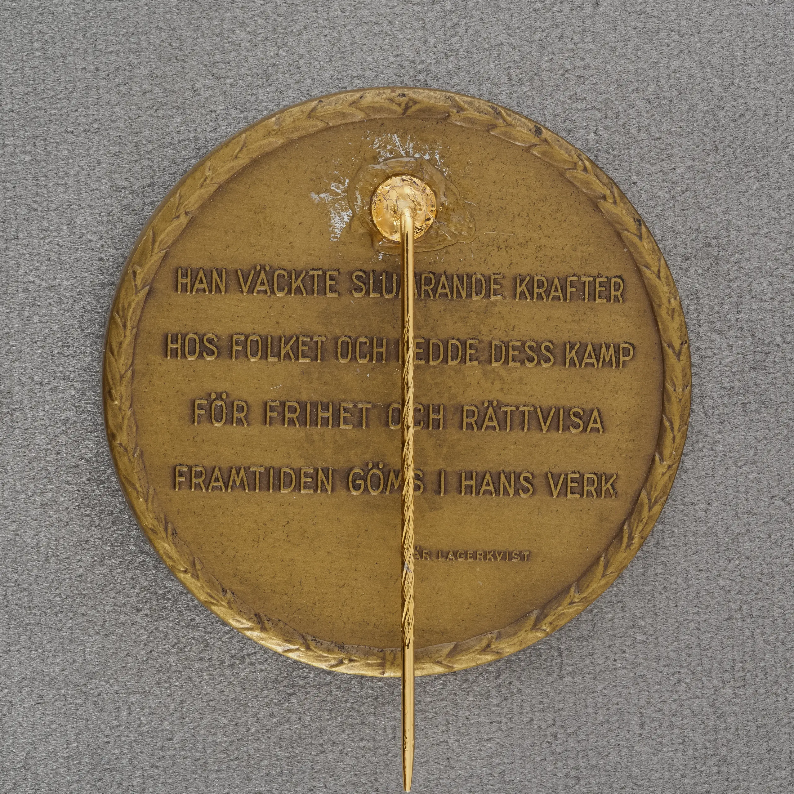 Minnesmedalj tillägnad Hjalmar Branting. Utgiven för att uppmärksamma 100-årsminnet av hans födelse.